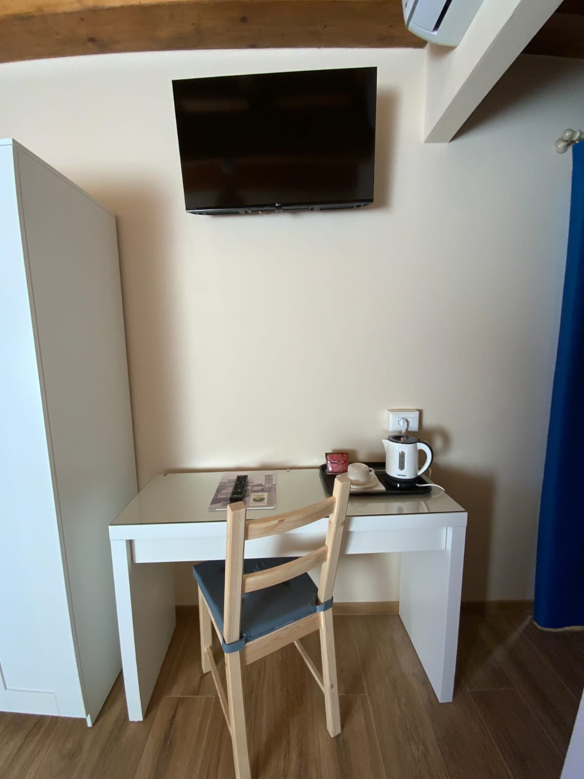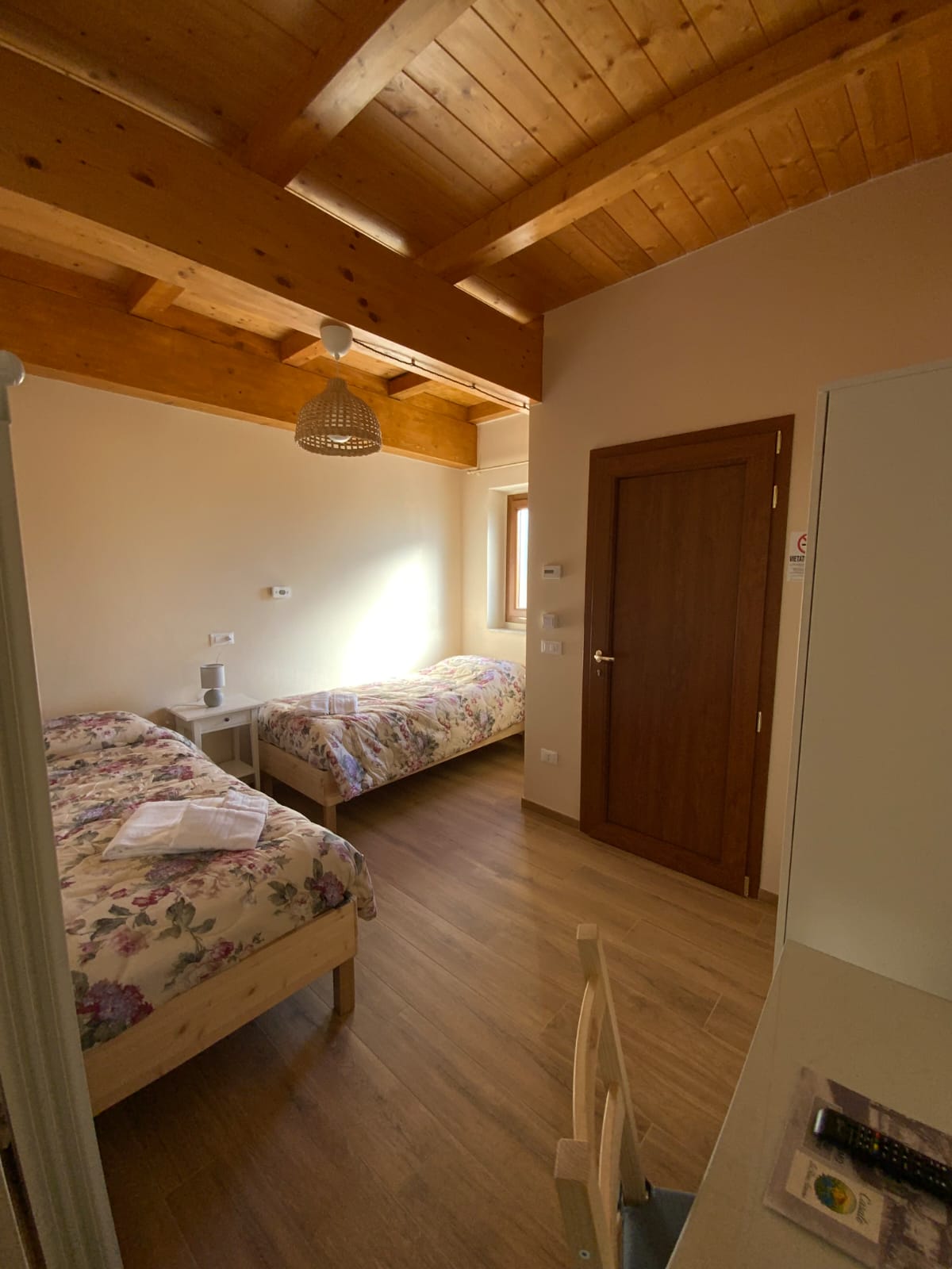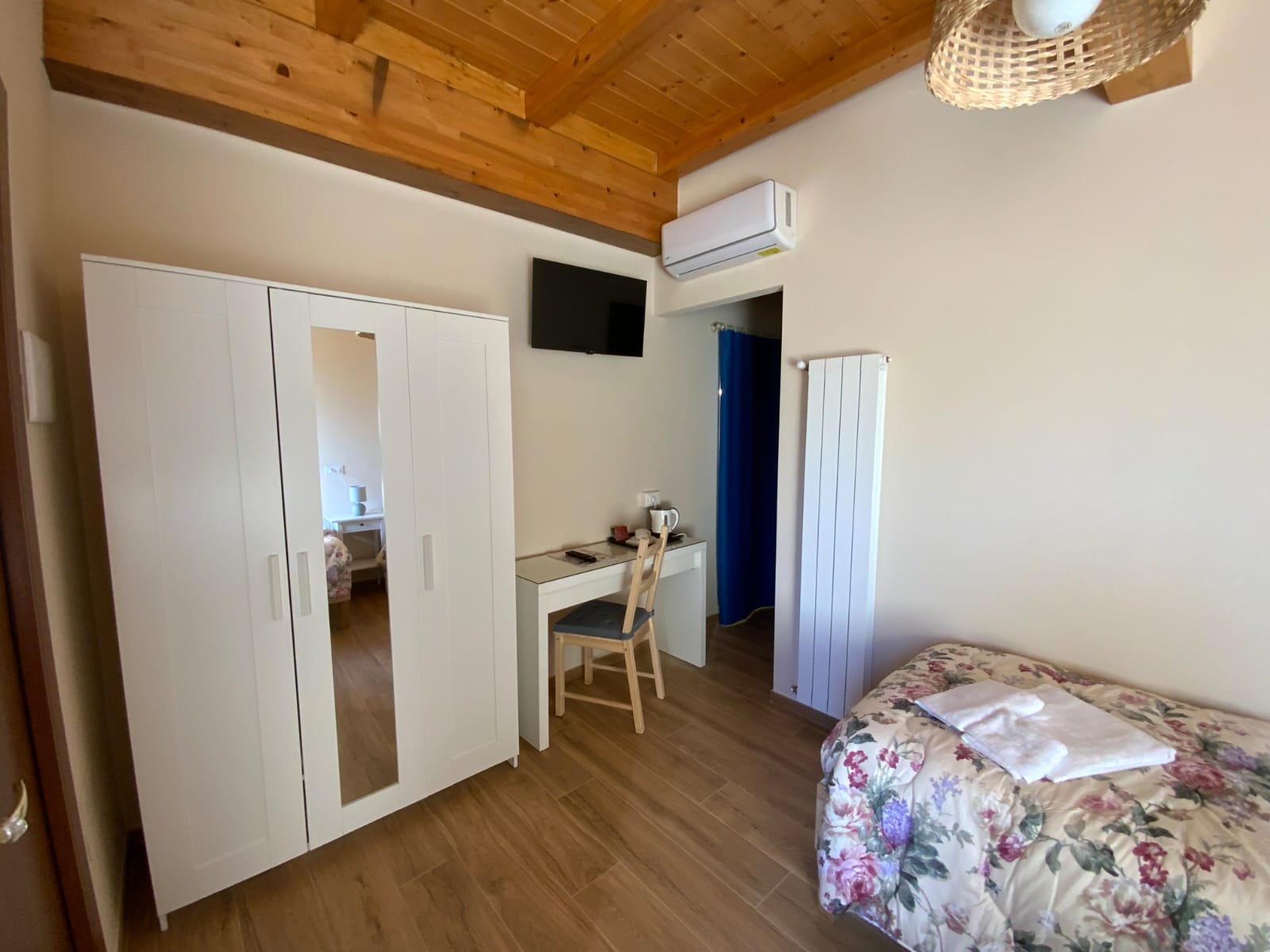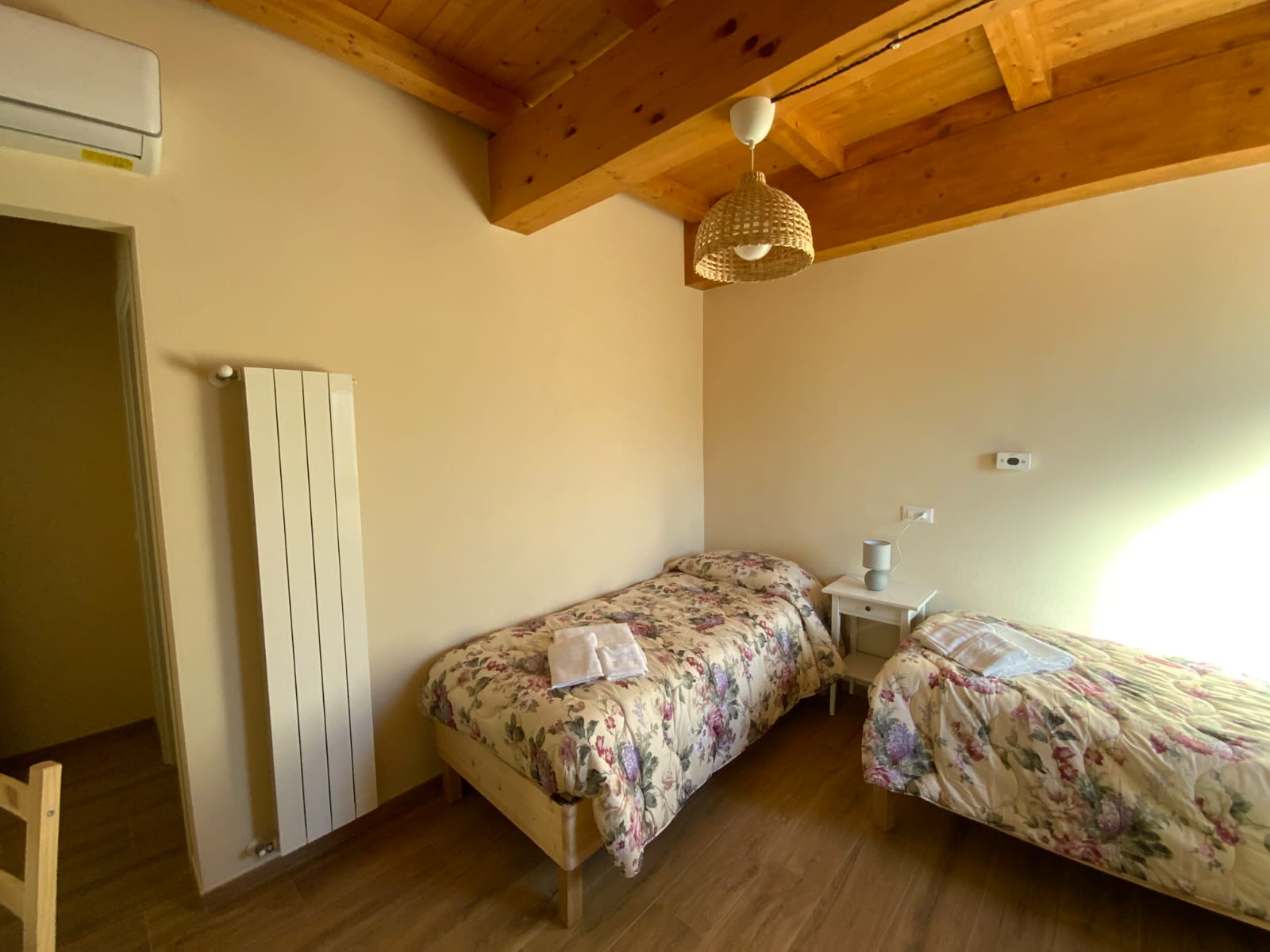 GARDENIA è una camera doppia accogliente e funzionale, situata al piano terra, facilmente raggiungibile dall’ingresso principale del casale, proprio accanto alla reception. La posizione la rende particolarmente comoda per gli ospiti che desiderano un accesso immediato ai servizi comuni, mantenendo al tempo stesso privacy e tranquillità. Dotazioni: Camera doppia al piano terra Bagno ampio con doccia Termoarredo in bagno Aria condizionata Riscaldamento TV a schermo piatto Angolo tè con bollitore per acqua calda Una camera perfetta per coppie o viaggiatori che cercano comodità, praticità e comfort all’interno di una struttura curata e accogliente.